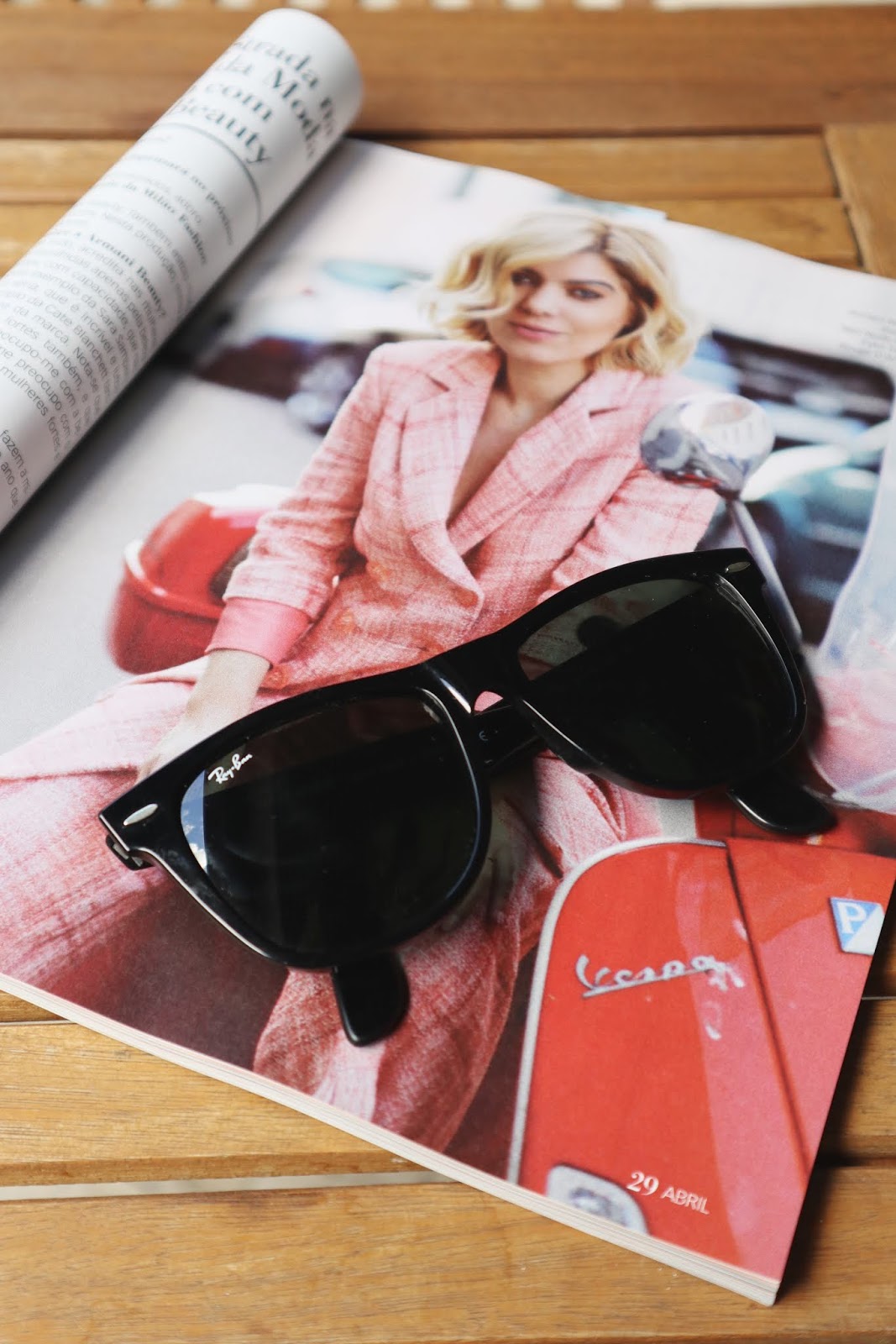 É uma das perguntas que mais recebo através de mensagens do instagram, qual a marca e modelo dos óculos de sol que mais uso! São os Original WAYFARER Classic da Ray Ban! Posso dizer que tenho uma gaveta bem grande e bem cheia de vários pares de óculos, a maioria todos Ray Ban, mas este modelo é, sem sombra de dúvida, o meu favorito de sempre! O amor que lhe tenho é tão grande que, há cerca de dois meses, a caminho de um trabalho, vá se lá saber como, perdi-os! Eu, que raramente perco coisas ainda hoje estou para perceber como é que aquilo me foi acontecer! Até chorei, juro.
